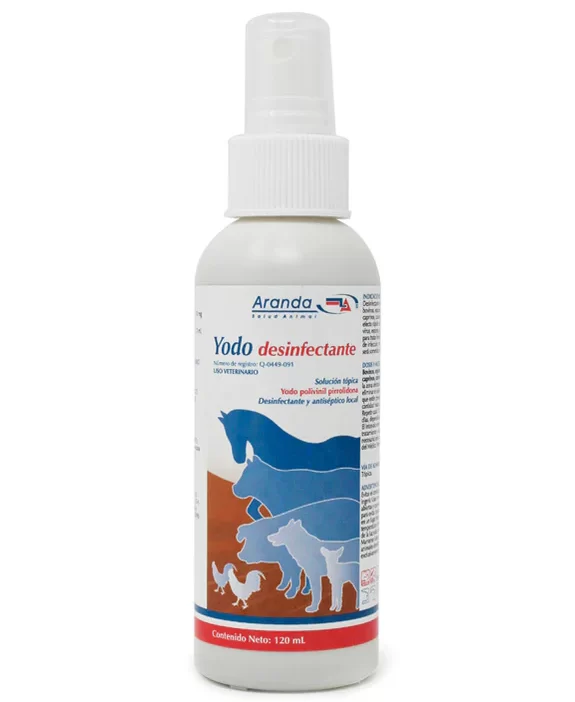 Desinfectante y antiséptico local para bovinos, equinos, porcinos, ovinos, caprinos, caninos, felinos, y aves; con efecto rápido sobre bacterias, hongos, virus, esporas y protozoarios. Indicado para tratar heridas, quemaduras en riesgo de infección, micosis cutánea y piel que será sometida a cirugía.